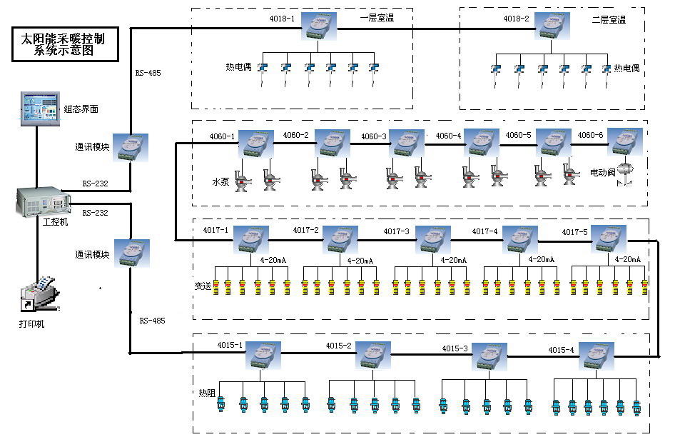 采用ADAM4K用于太陽(yáng)能采暖監(jiān)控和環(huán)境試驗(yàn)數(shù)據(jù)采集,解決青藏線車站\營(yíng)房供暖,同時(shí)保護(hù)青藏高原生態(tài)環(huán)境,充分利用高原太陽(yáng)能采暖 。