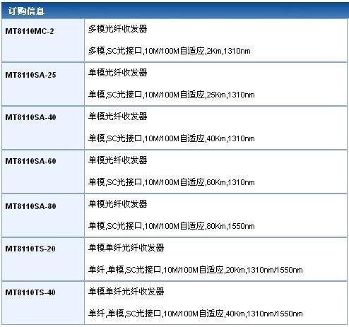 | 多模光纖:1310nm,5km(百兆) |