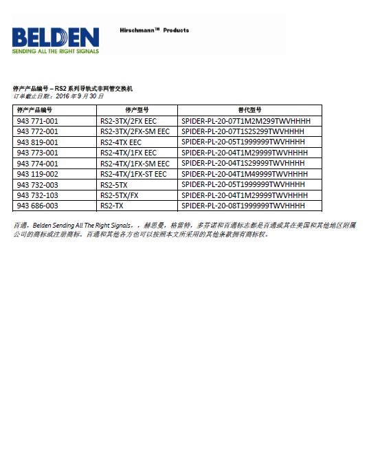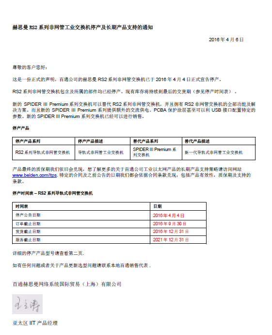 赫斯曼RS2系列非網(wǎng)管工業(yè)交換機停產(chǎn)及長期產(chǎn)品支持的通知