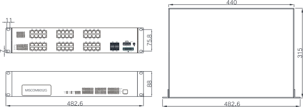 482.6mm×88mm×315mm (W×H×D)