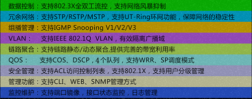 UT-62208F系列交換機支持8個10/100Base-TX端口,MDI/MDI-X自適應電口,可滿足系統(tǒng)高帶寬數(shù)據(jù)傳輸?shù)男枨蟆?/span>