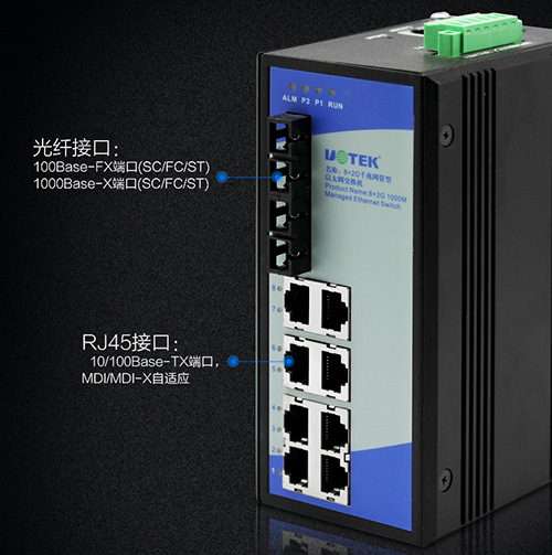 UT-62208F系列工業(yè)以太網交換機,即插即用,支持一路console口,提供CLI管理,支持工業(yè)現(xiàn)場所需的以太網二層協(xié)議,保證通信網絡的穩(wěn)定性。