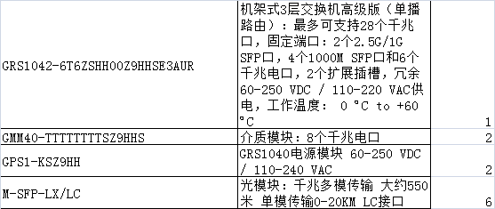 GRS1042-6T6ZSHH00Z9HHSE2A工業(yè)交換機(jī)主機(jī)。二層網(wǎng)管型,19英寸機(jī)架安裝,220VAC雙電源。6個(gè)千兆SFP插槽+6個(gè)千兆電口+2個(gè)介質(zhì)模塊插槽。