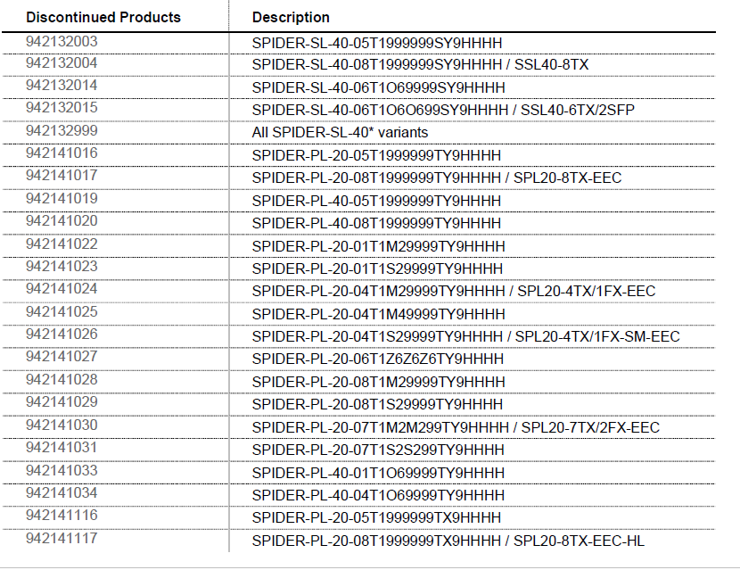 942132015 SPIDER-SL-40-06T1O6O699SY9HHHH / SSL40-6TX/2SFP