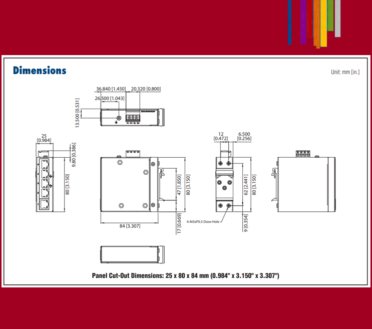 - 25 x 80 x 84 mm (0.98 x 3.15 x 3.31 in.)
