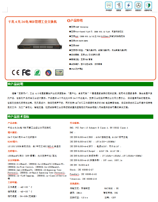 HS4424G-4SFP-24TX千兆4光24電WEB管理工業(yè)交換機