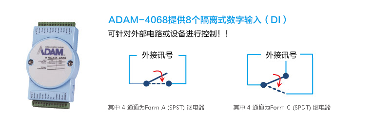 | ADAM-4068-BE | 支持Modbus的8路繼電器輸出模塊 |