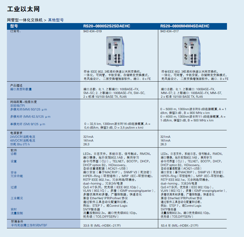 產(chǎn)品描述:赫斯曼交換機RS20-0800S2S2SDAEHC是符合ieee 802. 3標準的快速以太網(wǎng)交換機,一體化,非網(wǎng)管,卡軌安裝,存儲轉(zhuǎn)發(fā)交換模式,無風扇設計,端口: 8 x fe