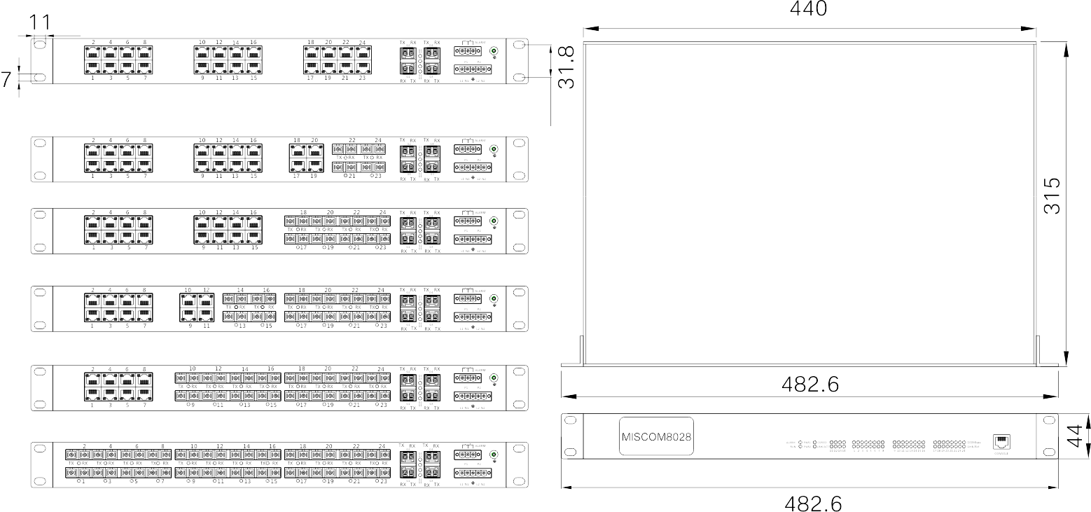 482.6mm×44mm×315mm (W×H×D)