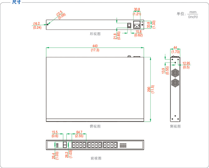 ● 2路千兆口支持1000BASE-X(SFP)接口; ● 24路支持POE輸出的百兆以太網(wǎng)接口 ● 支持MDI/MDIX自動(dòng)交叉功能 ● 支持自適應(yīng)性和確保數(shù)據(jù)完整性的存儲(chǔ)轉(zhuǎn)發(fā)功能 ● 自動(dòng)學(xué)習(xí)地址的功能 ● 支持IEEE802.3x全雙工流量控制和強(qiáng)制式半雙工流量控制 UT-64224-POE 機(jī)架式24+2G千兆POE以太網(wǎng)交換機(jī)提供2路千兆光纖接口和24路支持POE輸出的百兆以太網(wǎng)端口,可以為IEEE 802.3af/at設(shè)備(PD)供電,消除了額外的布線需求。其每個(gè)端口均支持自動(dòng)MDI/MDIX功能,這樣克服了做線和使用上的不方便,使其安裝真正做到了“即插即用”無論是使用直通電纜還是交叉電纜,都可以把UT-64224-POE的任意端口與其他網(wǎng)絡(luò)設(shè)備的任意端口連接起來。 >>訂購(gòu)信息