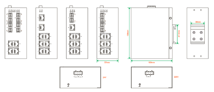 非網(wǎng)管型工業(yè)以太網(wǎng)交換機,5個百兆電口,3個百兆多模 SC 光口,24VDC單電源