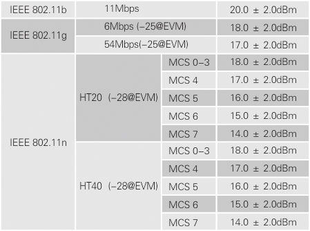 射頻頻率范圍:2412 GHz ~ 2472 GHz