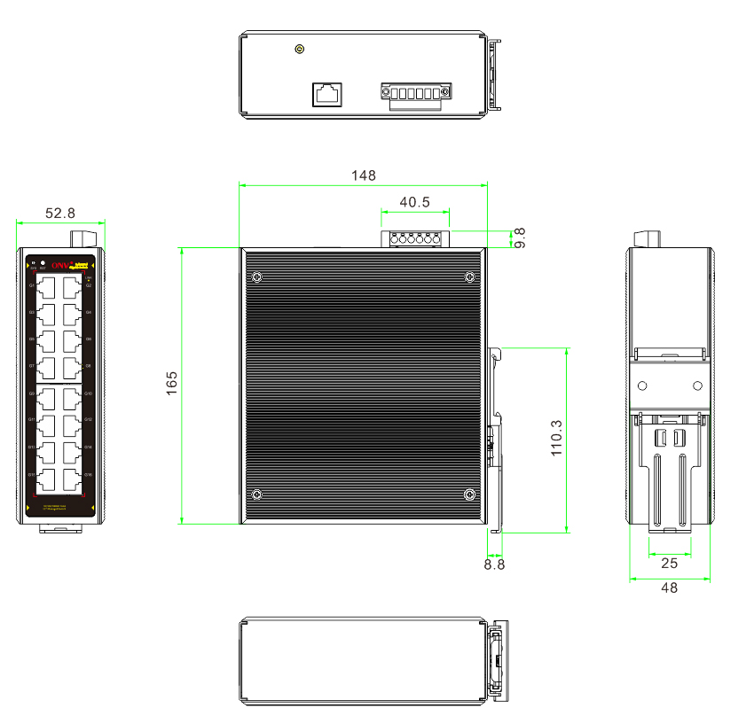 ◇ 導(dǎo)軌式工業(yè)級系列產(chǎn)品默認不配置電源,需要獨立購買,建議選用ONV自主研發(fā)的電源,高冗余設(shè)計,提供長久穩(wěn)定電力輸出。