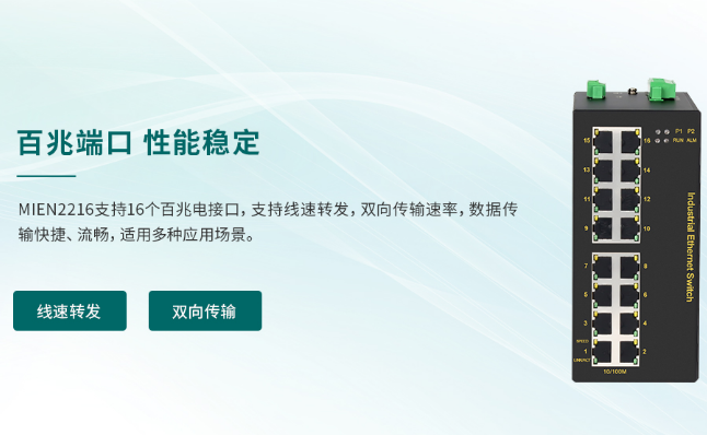 MIEN221616口二層百兆卡軌式工業(yè)以太網(wǎng)交換機(jī)![]() ![]() ![]() ◆ 支持16個(gè)百兆電接口配置; ◆ 百兆電口10/100M自適應(yīng),全/半雙工,MDI/MDIX自適應(yīng)模式; ◆ 支持指示燈狀態(tài)顯示; ◆ 即插即用,方便快捷,支持電源狀態(tài)繼電器告警輸出; ◆ 采用高強(qiáng)度封閉鋁制外殼,IP40防護(hù)等級(jí),無風(fēng)機(jī)外殼扇熱,持久耐用,穩(wěn)定可靠; ◆ 采用工業(yè)級(jí)電源設(shè)計(jì),多種電源方案可選,滿足用戶靈活應(yīng)用; ◆ -40℃~85℃工作溫度,滿足惡劣工業(yè)環(huán)境應(yīng)用要求。